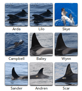 Citizen scientists on Whale FM are classifying the calls of 25 separate killer and pilot whales. These animals are actually more closely related to dolphins than larger whales such as humpbacks or sperm whales. You can see the names of all the whales and information about where they were tagged and how many of their calls have been recorded by visiting this page http://whale.fm/whales
