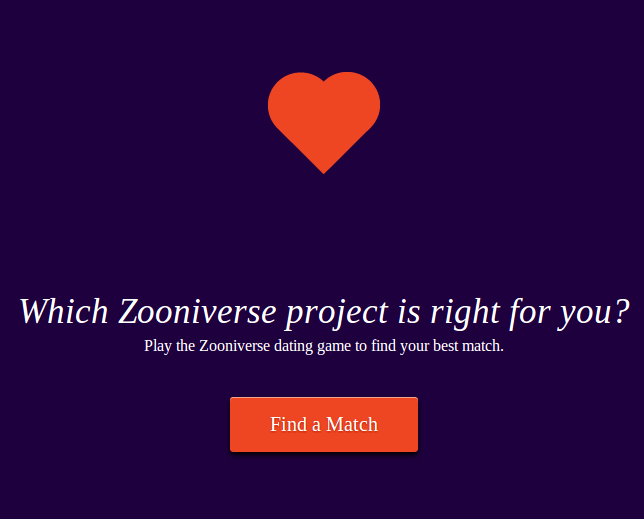 Try out this fun Zooniverse Datng site to find out which of our projects is a perfect match for you. We guarantee that you will find love, or you money back! Give it a go here http://dating.zooniverse.org/