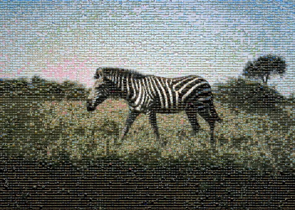 Today’s advent calendar surprise is another in the series of Zooniverse mosaics. This time it’s the Meta-Zebra. A zebra made from thousands of other zebra images from Snapshot Serengeti. To read more about this majestic beast, read this post on the Snapshot Serengeti blog http://blog.snapshotserengeti.org/2013/12/06/meet-the-meta-zebra/