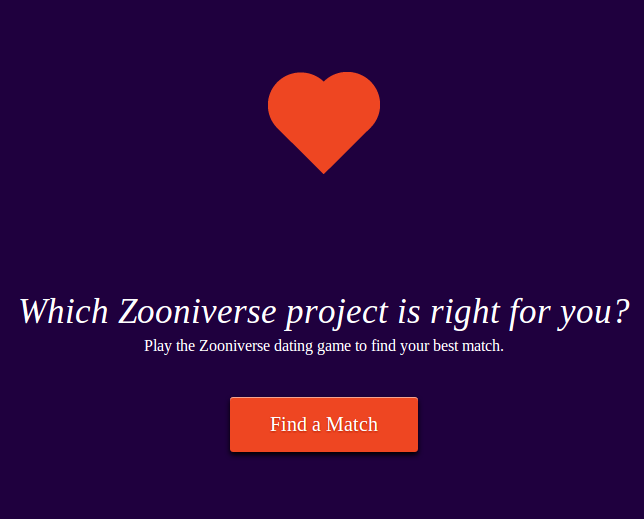 For the advent calendar we have updated our Zooniverse Dating app which matches you to your ideal project. The app now contains all twenty of our currently running projects. Answer the questions and find out which of our projects you are best suited to. Try it out here http://dating.zooniverse.org/