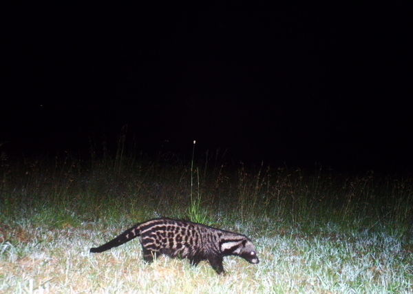 This is a great shot of an African Civet. They are nocturnal creatures and are not that commonly spotted on Snapshot Serengeti. African civets are one of the main species from which the musky scents used in perfume are extracted.