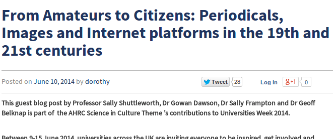This guest blog post by Professor Sally Shuttleworth, Dr Gowan Dawson, Dr Sally Frampton and Dr Geoff Belknap is well worth a quick read. It shows how the idea of citizens taking part in the scientific process had been around since at least the 19th century, and discusses how what was taking place back then compares to modern day citizen science. You can read it here www.sciculture.ac.uk/from-amateurs-to-citizens-periodicals-images-and-internet-platforms-in-the-19th-and-21st-centuries