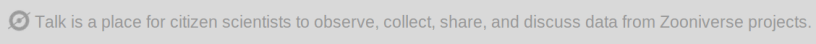At the Zooniverse we are currently rethinking the way the discussion areas (Talk) on our projects are structured. A vital part of this involves gathering feedback from those who use Talk the most, our volunteers. If you have used Talk on any of our projects and would be up for letting us know your thoughts, you can fill in this short feedback form to help us make sure we create a useful discussion area that suits the needs of the volunteers.