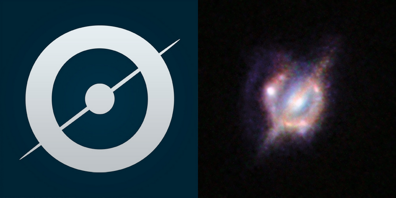 Have at look at the image on the right, taken by the Hubble Space Telescope. It shows a gravitationally-lensed galaxy merger (a nice marriage of Spacewarps and Galaxy Zoo science), which bares a striking resemblance to the Zooniverse logo (left) don’t you think?! Good to know the Universe is a fan of our work π Read more about the image here.