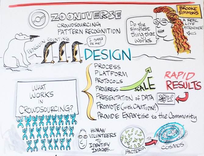 Her talk focussed on how crowdsourcing in the Zooniverse might be useful in the “digital humanitarian” sphere. Each session had a scribe creating sketches similar to this one. Pretty funky stuff!