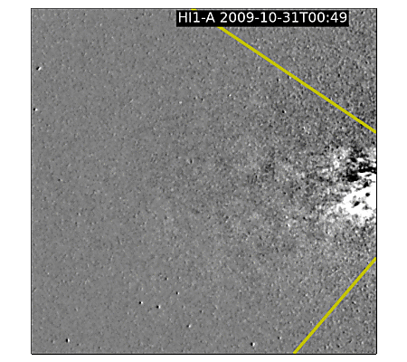This animated gif shows how the consensus of volunteer clicks on Solar Stormwatch tracks the front of a coronal mass ejection (CME) as it expands away from the surface of the Sun. You can read more about the analysis of the volunteers clicks and how they are helping researchers understand more about space weather in this blog post on the Solar Stormwatch blog. Get involved in the project today at www.solarstormwatch.com