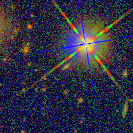 The wonderful light-show in this image is being caused by a very bright star in the upper right. However, in the Talk comments for this picture, one of our excellent moderators on Galaxy Zoo has reminded volunteers to “always classify the object in the center of the image, even if it is the most boring one”! Expert advice indeed.