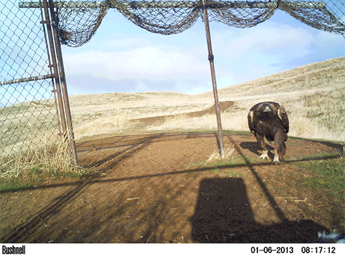 Back in January 2013, one of the sites used by the Condor Watch team was visited by a curious (and presumably hungry) golden eagle (Aquila chrysaetos). The eagle seemed particularly interested in the team’s camera, maybe even more so than it was in the carcass that had just been left there!