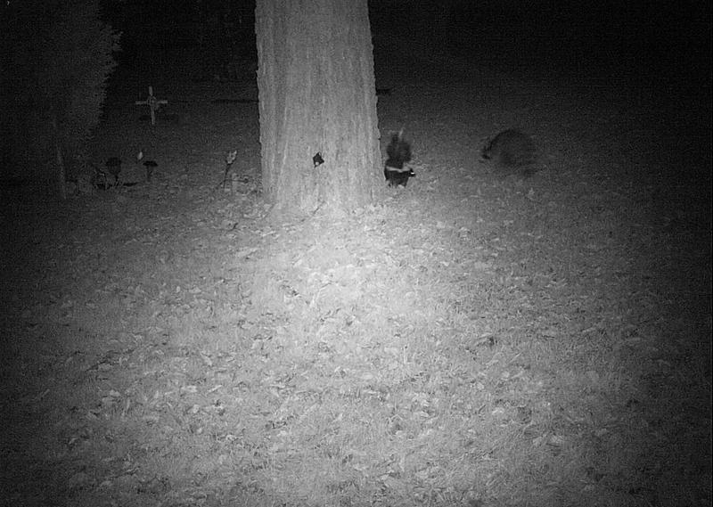 This little (admittedly blurry) nocturnal crossing of paths was spotted by zooites classifying on Chicago Wildlife Watch. What do you suppose these critters would be saying to each other?