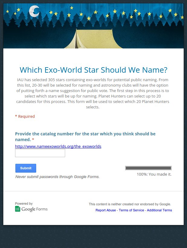 The are only two days left to vote for which exoplanet the Planet Hunters community should try and name as par of the IAU/Zooniverse Name Exoworlds campaign. Just log on at www.planethunters.org today and click the vote button in the menu at the top of the page. Hurry!