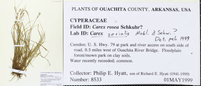 Discovered in the Notes for Nature project, this Carex sample, be it rosea or socialis, might initially seem unremarkable. But look closer… there’s a sad-but-heartwarming story there. See it?