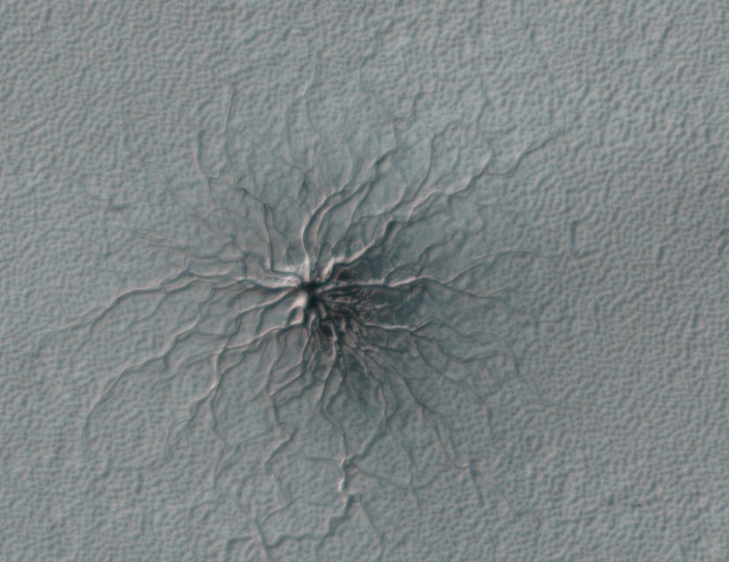 Have a look at this stunning image from the surface of Mars. These formations are colloquially known as spiders. They are actually channels carved into the Martian surface which are visible in the winter when covered in ice. See if you can catch some spiders today at www.planetfour.org
