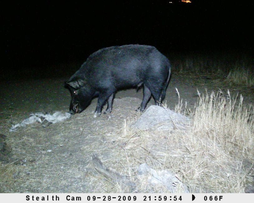 One of the rarer species to show up at a carcass site on Condor Watch, but pigs are highly omnivorous and will eat pretty much anything, so it’s not too odd that this guy has an interest in the carcass. A remarkable photo overall. Meanwhile, volunteers on Talk couldn’t quite help themselves from discussing bacon recipes!