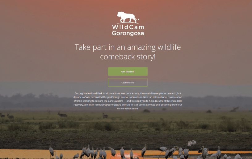 We have another amazing new project for you to try out! It’s called WildCam Gorongosa. Those of you who have taken part in Snapshot Serengeti and Chicago Wildlife Watch will find it familiar. It is a joint venture between the Zooniverse, Howard Hughes Medical Institute, and the Gorongosa Restoration Project, and involves identifying a range of animals in pictures from Mozambique’s Gornongosa National Park.