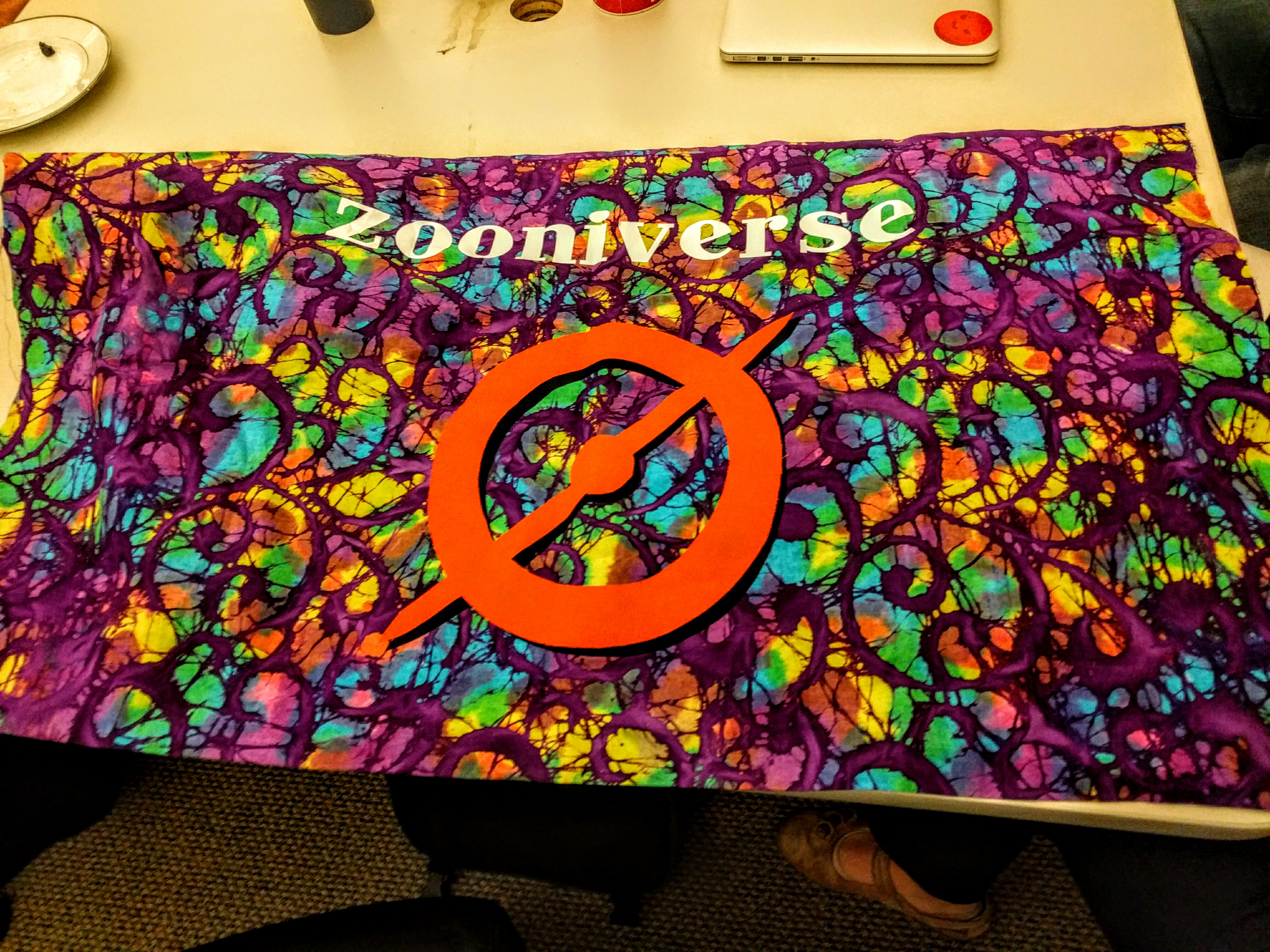 One of our developers, Sascha Ishikawa, recently moved out west to California, and he has decided to create a flag to represent this new Zooniverse location – “Zooniverse West”. He wants me to stress the fact that he cut out the logo by hand. Now we’re going to have to create Zooniverse flags for Oxford, Chicago, Minnesota, and Portsmouth…