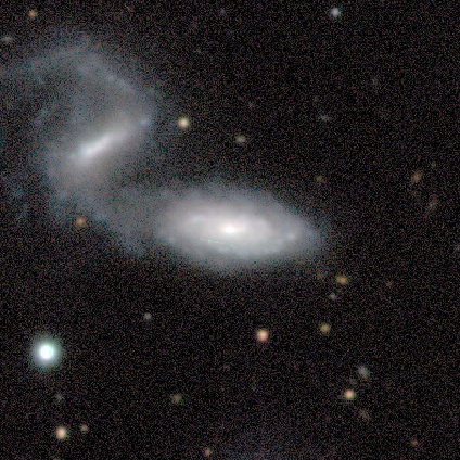 These two beautiful spiral galaxies are merging with each other. In a few billion years this same process will happen to our Milky Way galaxy and our close neighbour, Andromeda. Thanks to @PolishPlanetPursuer, who spotted this image on Galaxy Zoo, for recommending it as a Daily Zooniverse post!