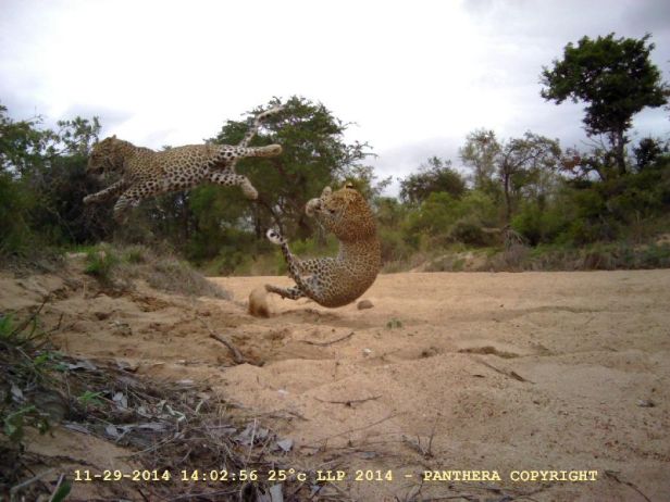 This shot of two leopards in a mid-air battle would make any wildlife photographer jealous, especially considering this was taken by an automatic camera trap!