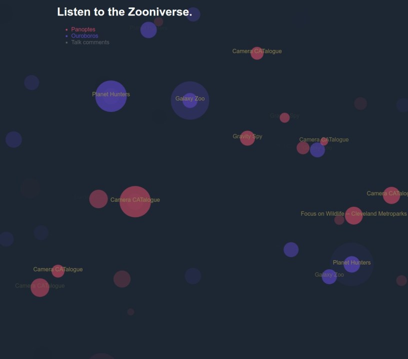 Listen to the Zooniverse is th work of award-winning Zooniverse developer Jim O’Donnell.
