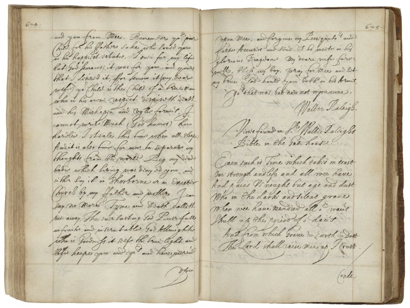 The page also contains a one of Raleigh’s poems, a sonnet, “Even Such is Time”, written while he was imprisoned in the Tower of London.