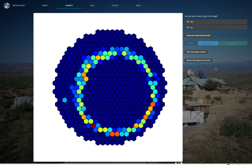 Muons (a particle like an electron, only heavier) are a prominent background contaminant when observing very-high-energy gamma rays on earth. They leave a distinctive ring-like shape making them obvious to the human eye, but incomplete or truncated rings can appear very gamma-ray-like to automatic analysis algorithms. We need your help to identify camera images that contain muon rings so we can teach computers to better identify such images and efficiently filter out those pesky muons that are masquerading as gamma rays.