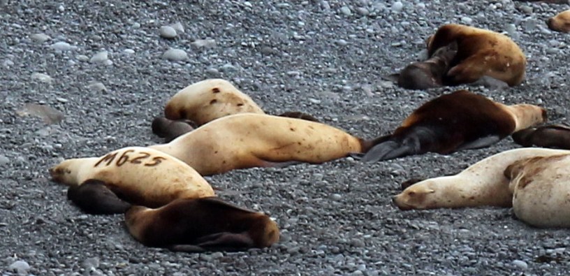 Steller Watch has a new Sea Lion of the Month for April! Many volunteers on the project have seen and nominated M625 and she has quite the story to tell! She was born and marked on Medny Island, Russia on June 27, 2004 and weighed 64 pounds. Medny Island is a part of the Commander Islands which is located just over 200 miles northwest of the Aleutian Islands, Alaska (United States). In two weeks, she swam over 400 miles to arrive at Cape Wrangell on Attu Island where we saw her on our remote cameras. Immediately after arriving, she gave birth to her third pup!