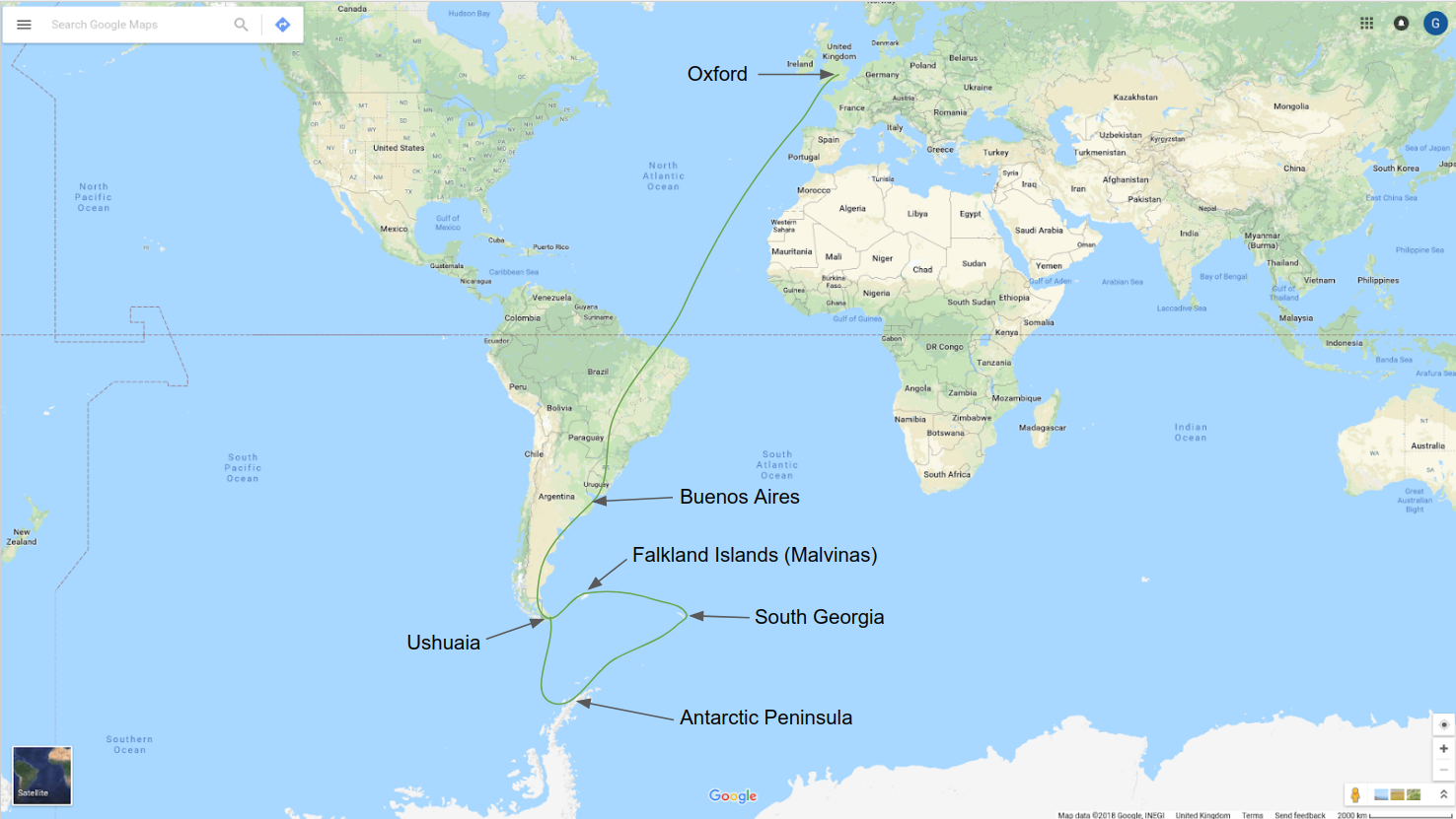 Citizen Science, Penguin Watch, Projects Penguin Watch Expedition Video Diary Date: April 8, 2019Author: The Zooniverse 0 Comments The route for my 3-week Penguin Watch expedition. A closer look at the route of the expedition from Ushuaia to the Falkland Islands, then over to South Georgia before heading down to the Antarctic Peninsula and back up across the Drake Passage. Share this: Click to share on X (Opens in new window) X Click to share on Facebook (Opens in new window) Facebook Click to email a link to a friend (Opens in new window) Email More Click to print (Opens in new window) Print Click to share on Tumblr (Opens in new window) Tumblr Like Loading... Related
