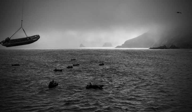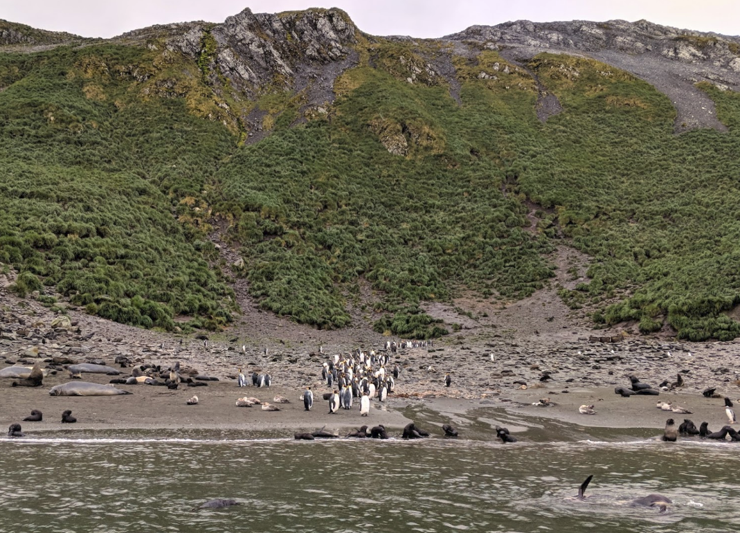 My first sight of South Georgia, and getting the zodiacs in the water for our cruise of Elsehul.Elsehul. The bay was full of king penguins, fur seals, and elephant seals.