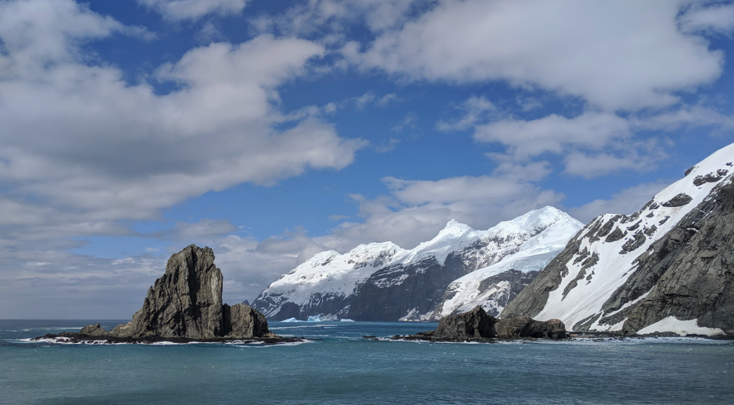 Point Wild. names after Frank Wild who led the expedition team after Shackleton made the epic journey to South Georgia to find help. They were rescued after 4 months on this tiny, inhospitable piece of land. It looks like a lovely day in this picture, but the wind and sea swell made it impossible for us to land.A pod of fin whales near Elephant Island. Fin whales are the second largest animal on Earth, after the blue whale.