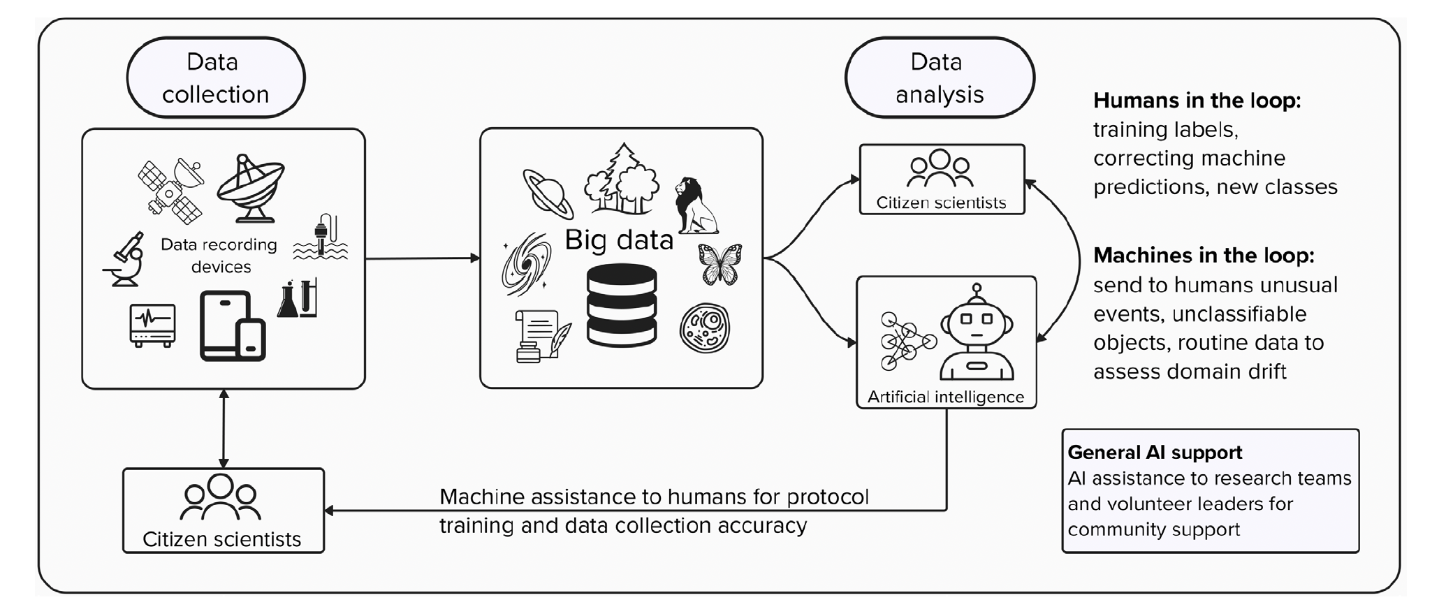 This collection of articles is a significant achievement for the whole Zooniverse community and a great opportunity for everyone involved with Zooniverse to reflect on how the general citizen science research community is thinking about the opportunities provided by AI, as well as the many concerns and challenges. It is also an occasion to celebrate the cutting-edge discovery our amazing volunteers and research teams contribute to on a daily basis. Congratulations, everyone!