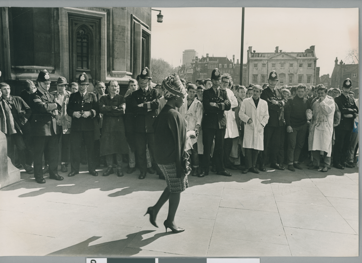 “…for me [this photograph] just says everything about standing up for who you are, speaking out. And when I look at [it] I think, yes, how things have changed. I think some things have changed, but we are still demonstrating. We are still fighting to be heard, to be seen. And so for me, yeah, that’s it. Every time I look at this picture, every time I see it, I just see this one strong Black woman standing up for the community.”